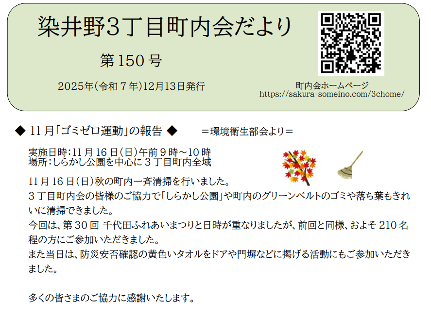 染井野3丁目町内会だより 第142号2023年12月9日発行