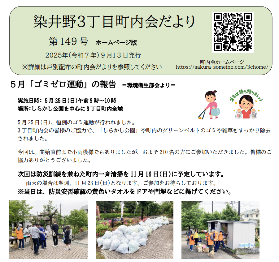 染井野3丁目町内会だより 第141号 2023年9月9日発行